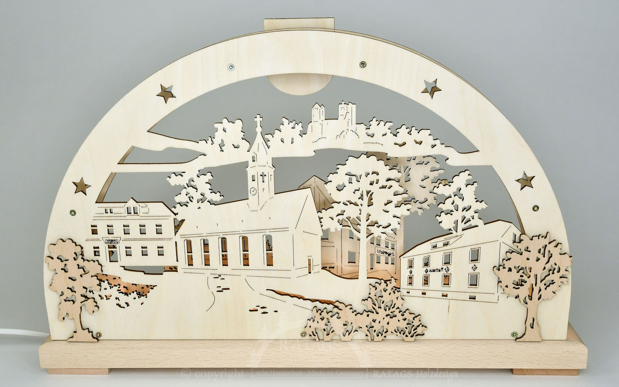 Produktinformationen "3D-LED-Schwibbogen Langenwolmsdorf klein, 800 Jahre Lawodo"