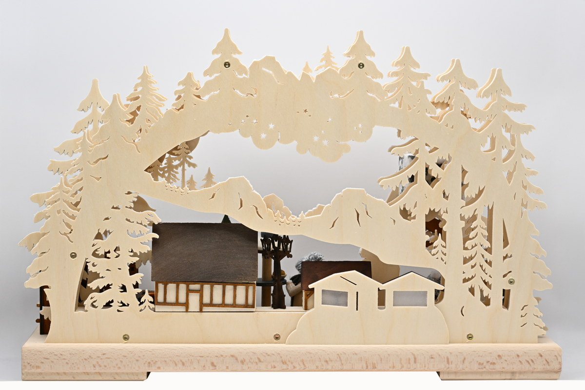 3D-Schwibbogen kl., Gebirgsweihnachtsmar mit Raureif