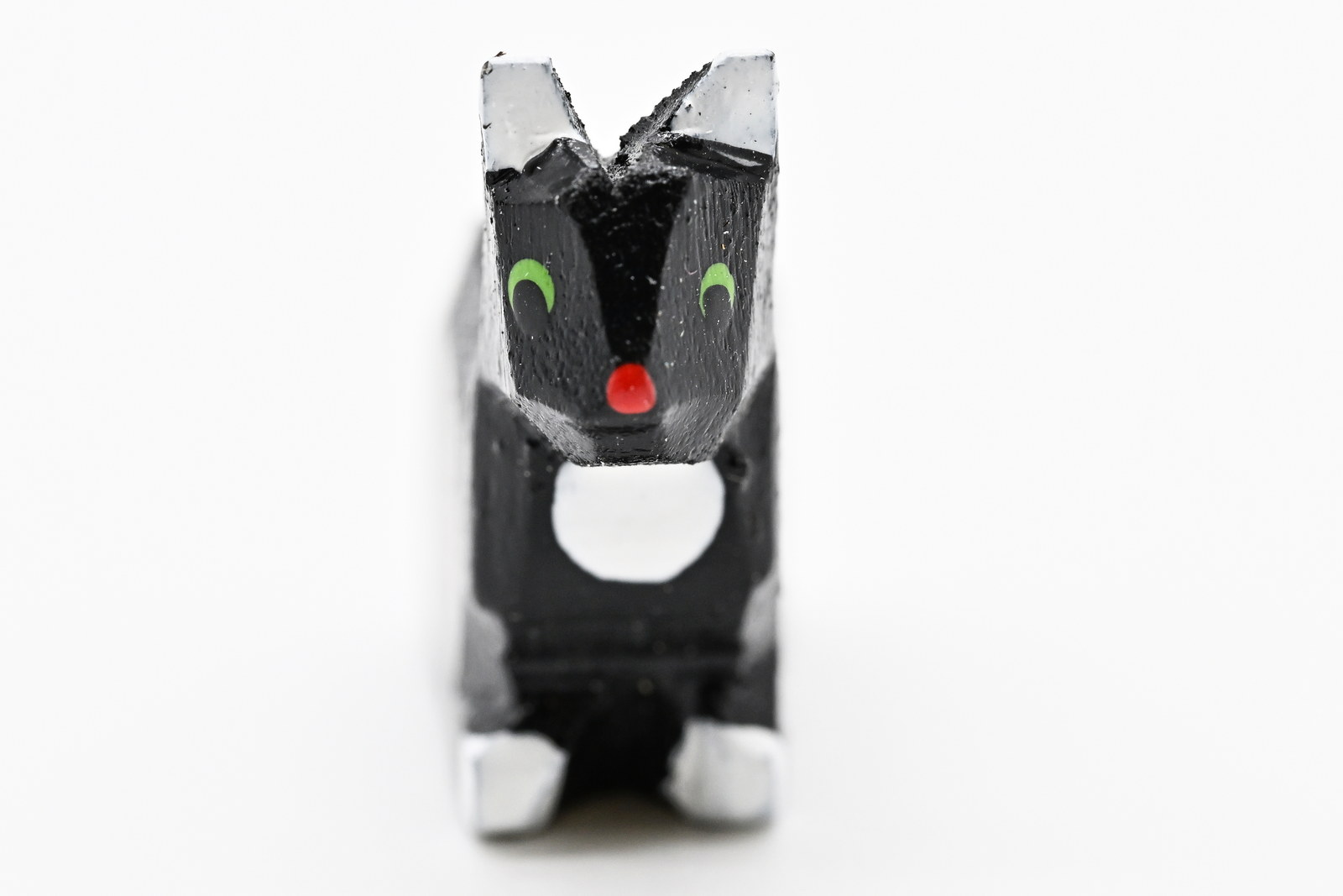 Katze geschnitz, bemalt, sitzend, 2 cm