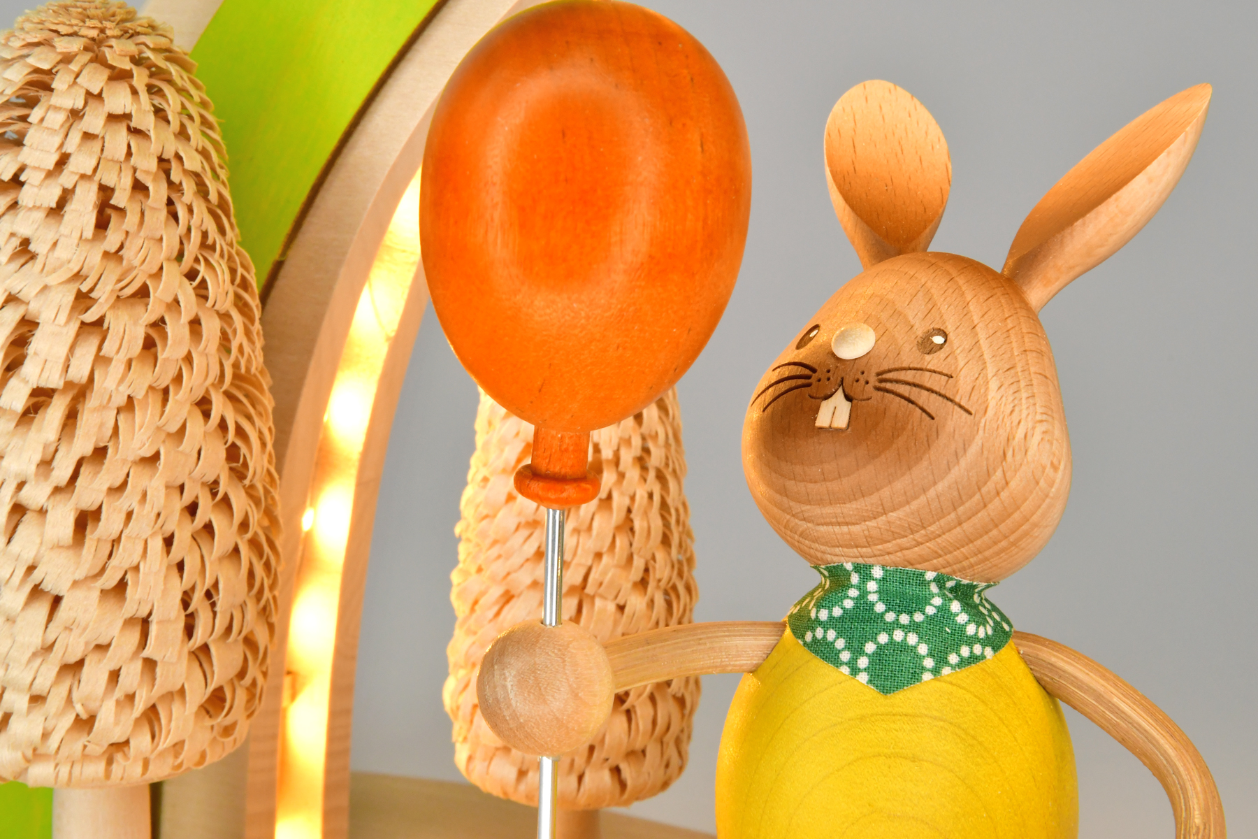Massivholzbogen Ostern, Stupsi mit Luftballon, LED-Stripe