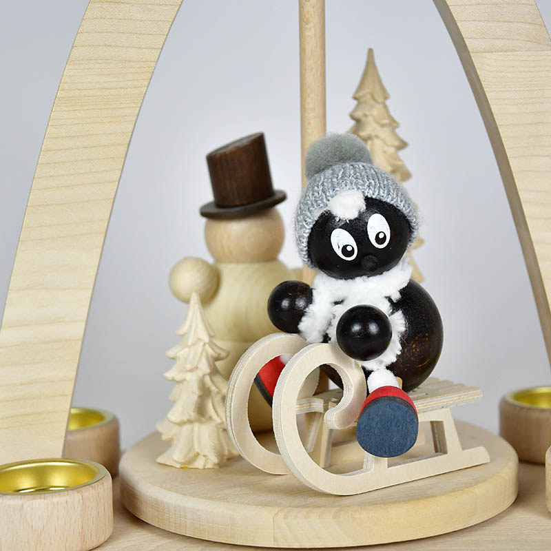 Massivholzpyramide groß - Pitti auf dem Schlitten