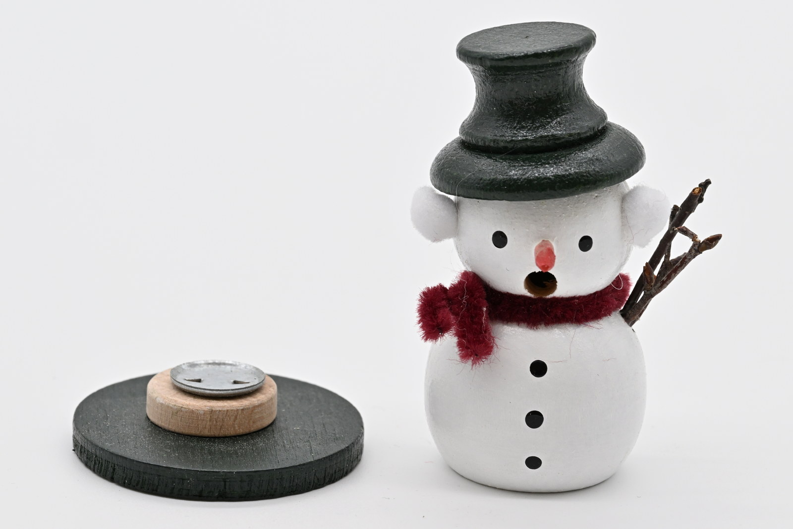 Produktinformationen "MiniRäuchermännchen, Schneemann, weiß, grüner Hut, lila Schal"