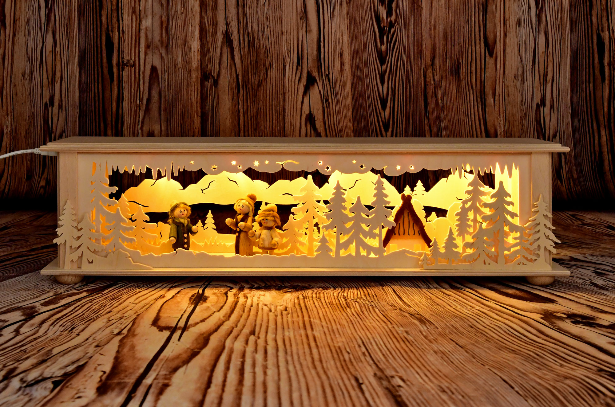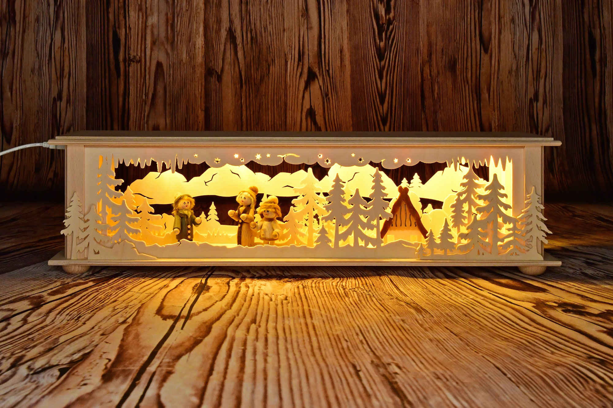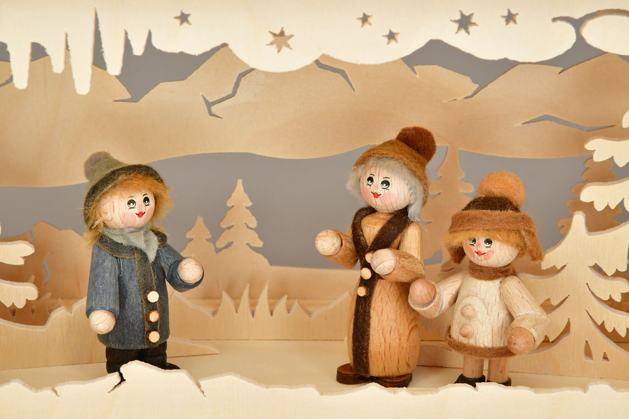 Raumleuchte kl., Häuschen, 3 Winterfiguren