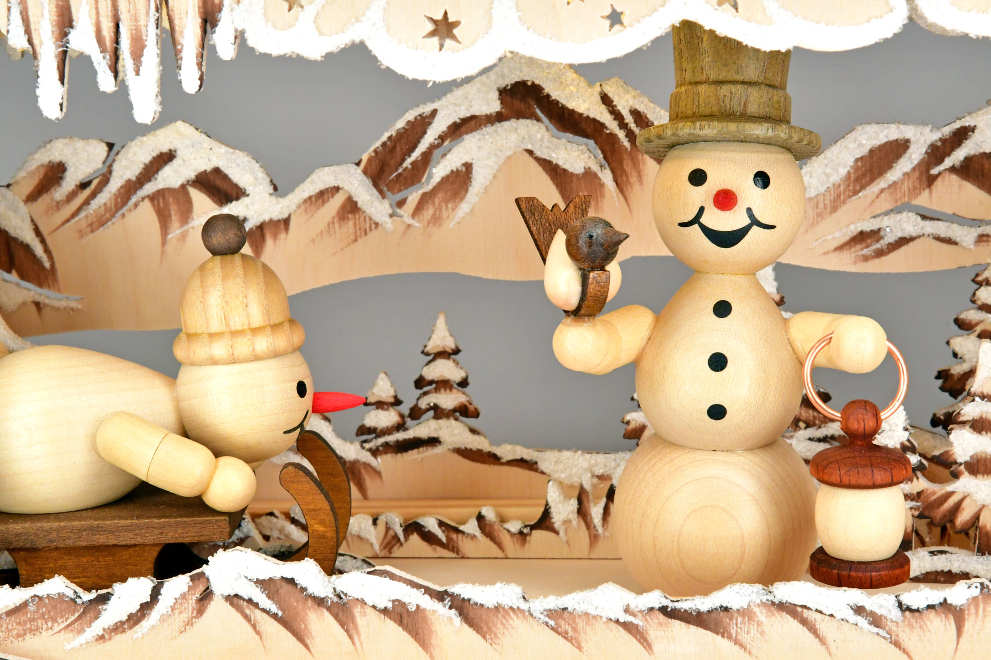 Produktinformationen "Raumleuchte kl., Schneemänner, handbemalt braun, Raureif"