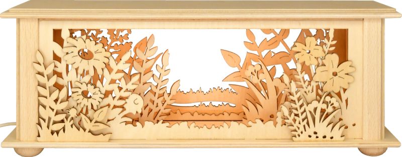 Größe: 50 x 12 x 10 cm (BxHxT)Beleuchtung: LED, 10-teiligDie kleine Raumleuchte hat das Motiv eines Waldes mit hohen Stämmen und Tannen. Zu etwas ganz Besonderem wird der naturbelassene Unterbau durch seine detailreiche Gestaltung. Verschiedene Tierarten sind hier zu entdecken. Diese Schwibbogen-Erhöhung ist die perfekte Konsole für kleine Schwibbögen, nicht nur an Weihnachten. Unsere Laubsägearbeit ist echte Handarbeit und strahlt durch die zehnteilige indirekte LED-Beleuchtung eine besondere Gemütlichkeit aus.Echte Handarbeit aus dem Hause RATAGS - Made in Germany - 100% original Erzgebirge